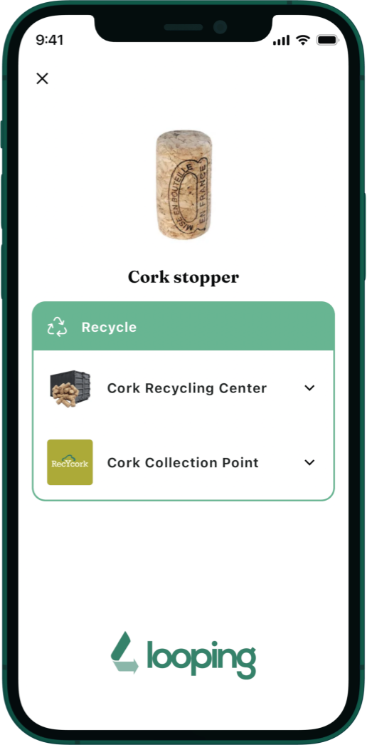 By using Looping, you can easily identify recyclable waste, find the nearest sorting centers and get tips on how to adopt an eco-responsible lifestyle. This way, you become a key player in the circular economy, enabling the recovery and reuse of a multitude of materials.Together, we can create a more sustainable and environmentally-friendly world.